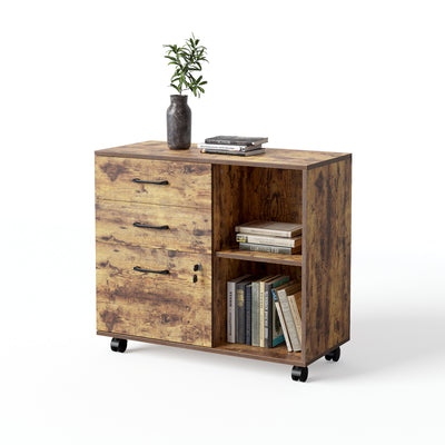 3-Drawer Wood File Cabinet with Open Storage Shelves